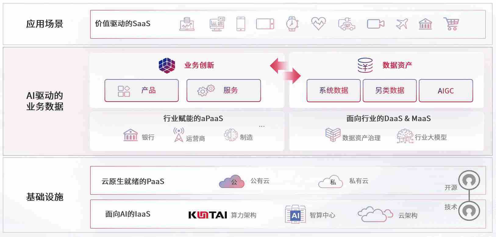 数字时代,,,,围绕企业数字化转型的关键要素,,,,z6尊龙数码开创性的提出数云融合战略和技术体系框架,,,着力在云原生、、、数字原生、、、AI原生和信创产业上架构产品和服务能力,,,为处在不同数字化转型阶段的快消零售、、、汽车、、、、金融、、医疗、、、、政企、、、教育、、、运营商等行业客户提供泛在的敏捷IT能力和融合的数据驱动能力,,,构建跨界融合创新的数字业务场景和新业务模式,,助力企业级客户建立面向未来的核心能力和竞争优势,,,,全面推动社会的数字化、、、智能化转型升级。。。